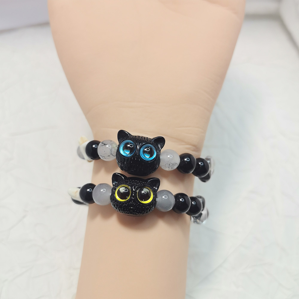 Cheese Black Sesame Kitty Black Cat Bracelet 2025 New Star Black and White Cute Instagram Couple Bracelet