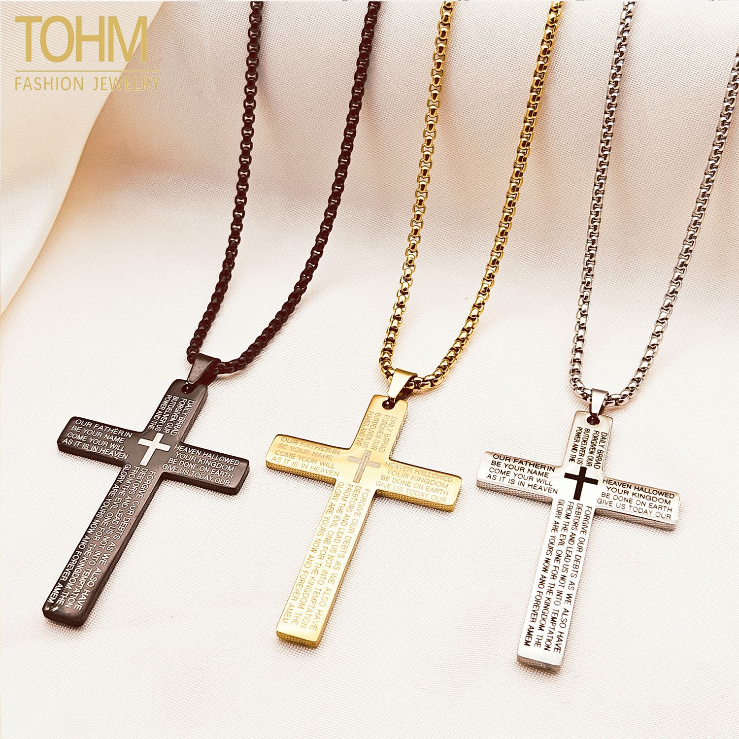 Tohm Amazon Trendy Stainless Steel Geometric Necklace Men and Women Versatile Titanium Steel Cross Pendant Jewelry