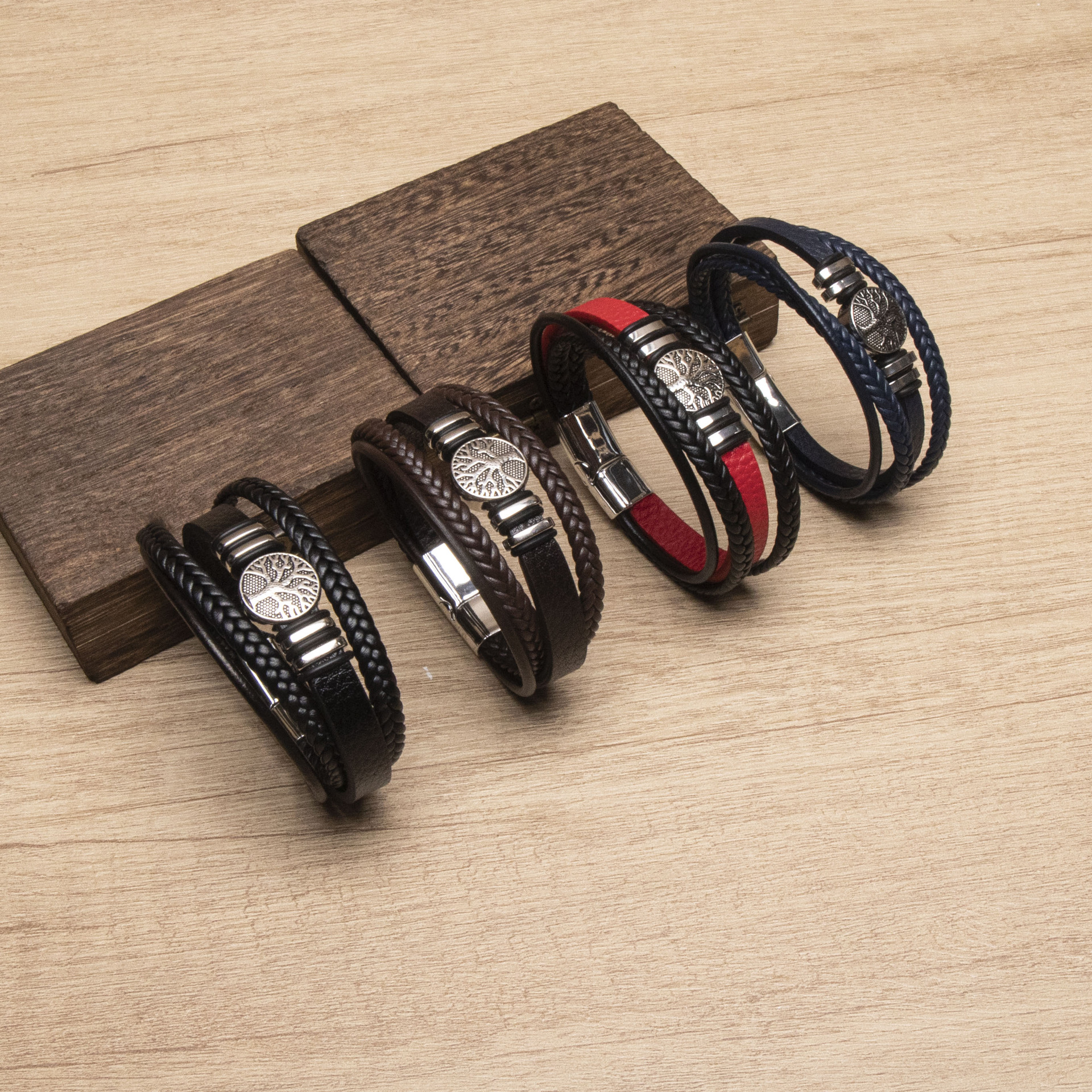 1Pc Men's Jewelry Hot-Selling Life Tree Imitation Leather Bracelet Simple Multi-Layer Bracelet