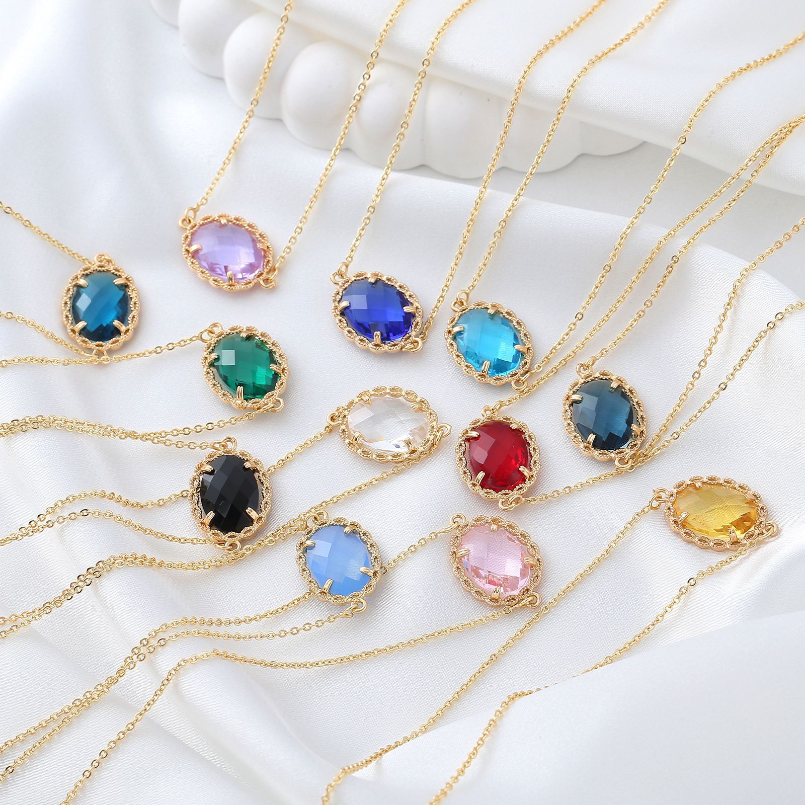 Fashion Color Zircon Necklace Women's Simple Atmospheric Creative Diamond Collarbone Chain Super Flash Oval High-grade Gold-plated Jewelry