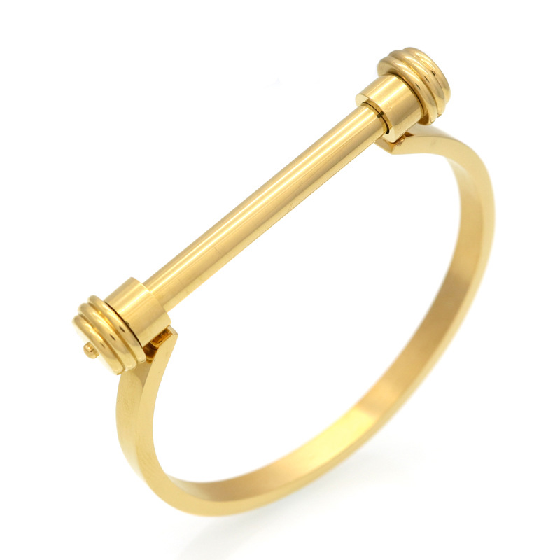 European and American Hot-selling Jewelry Horseshoe Dumbbell Shackle Bracelet Titanium Steel Semi-round D-shaped Barbell Button Screw Men's and Women's Bracelet