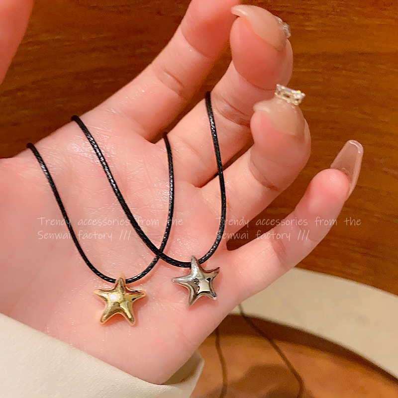 Sweet Cool Spice Girl Black Rope Star Necklace Women's Simple All-match High-end Style Collarbone Chain South Korea Fashionable Personalized Accessories