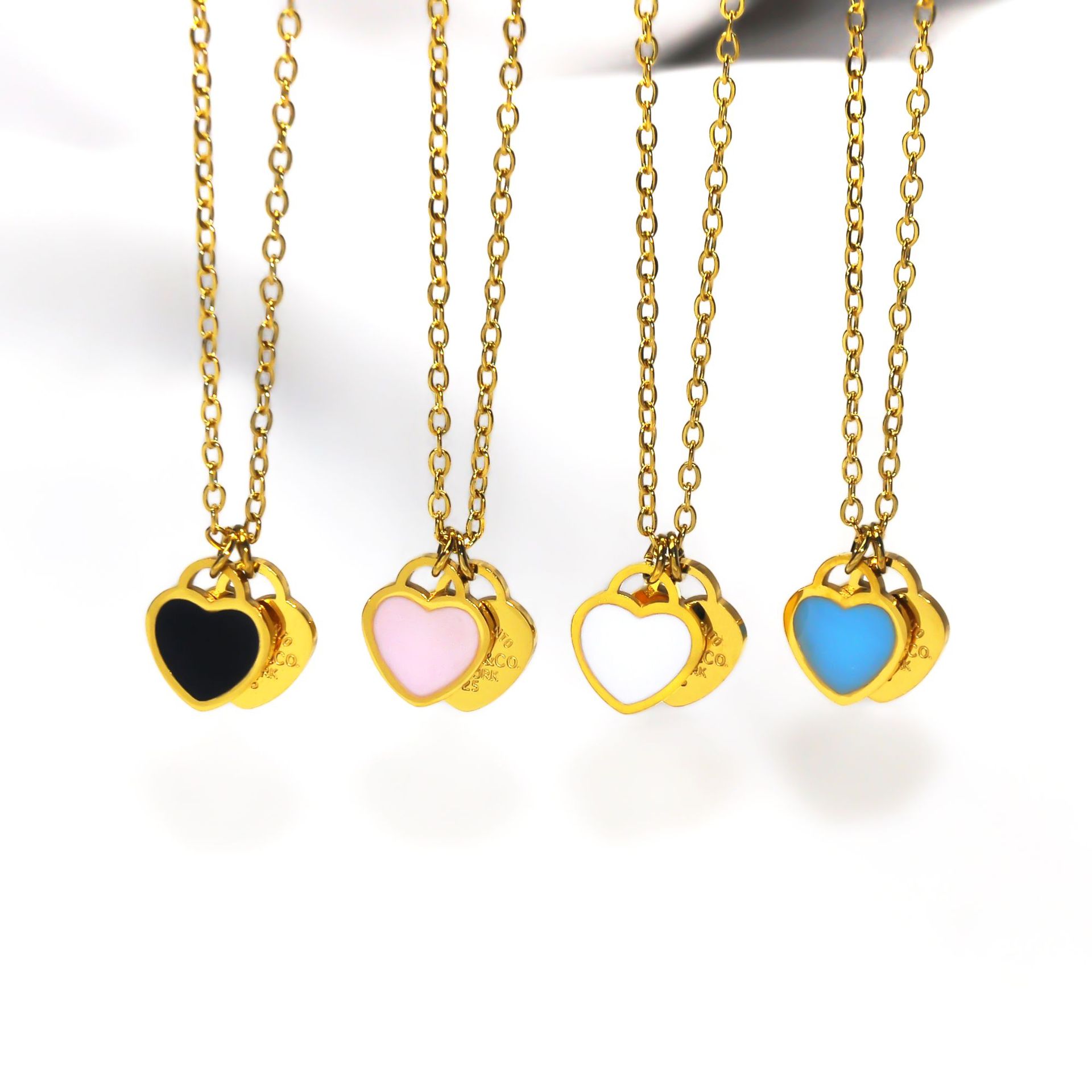 T's Classic Heart Double Heart Pendant Necklace Women's Enamel Heart Necklace