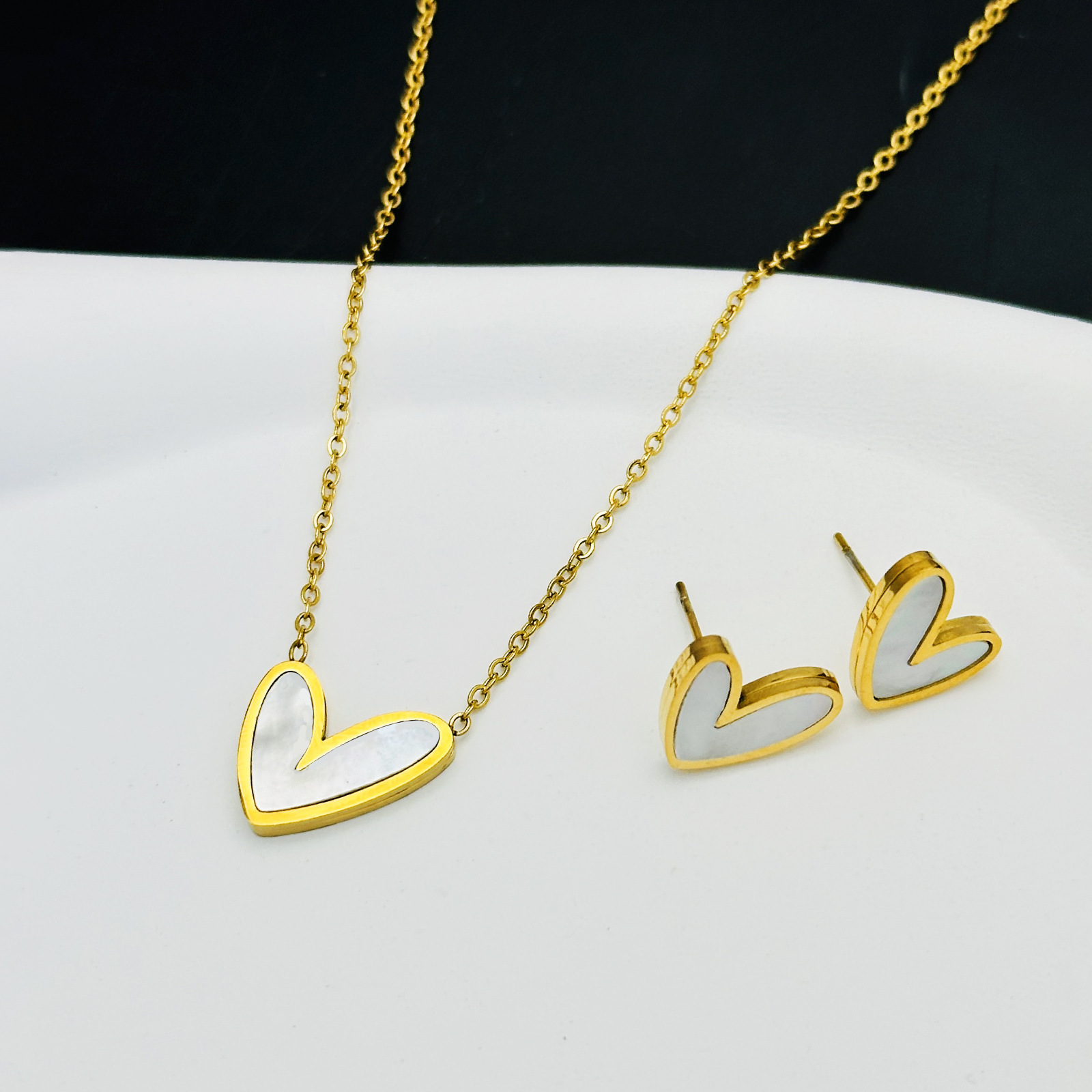 Niche design shell peach heart titanium steel necklace women's light luxury temperament black and white shell heart-shaped clavicle chain earrings wholesale