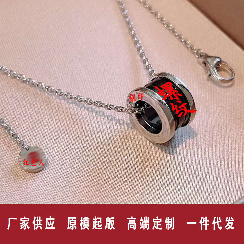 Baojia Little Red Man Charity Necklace Titanium Steel Popular Black Ceramic Spring Small Waist Internet Celebrity Clavicle Chain for Men and Women