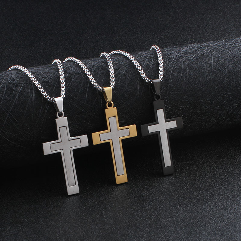 European and American men's titanium steel necklace welding two-color cross pendant simple personality sweater chain female stainless steel jewelry