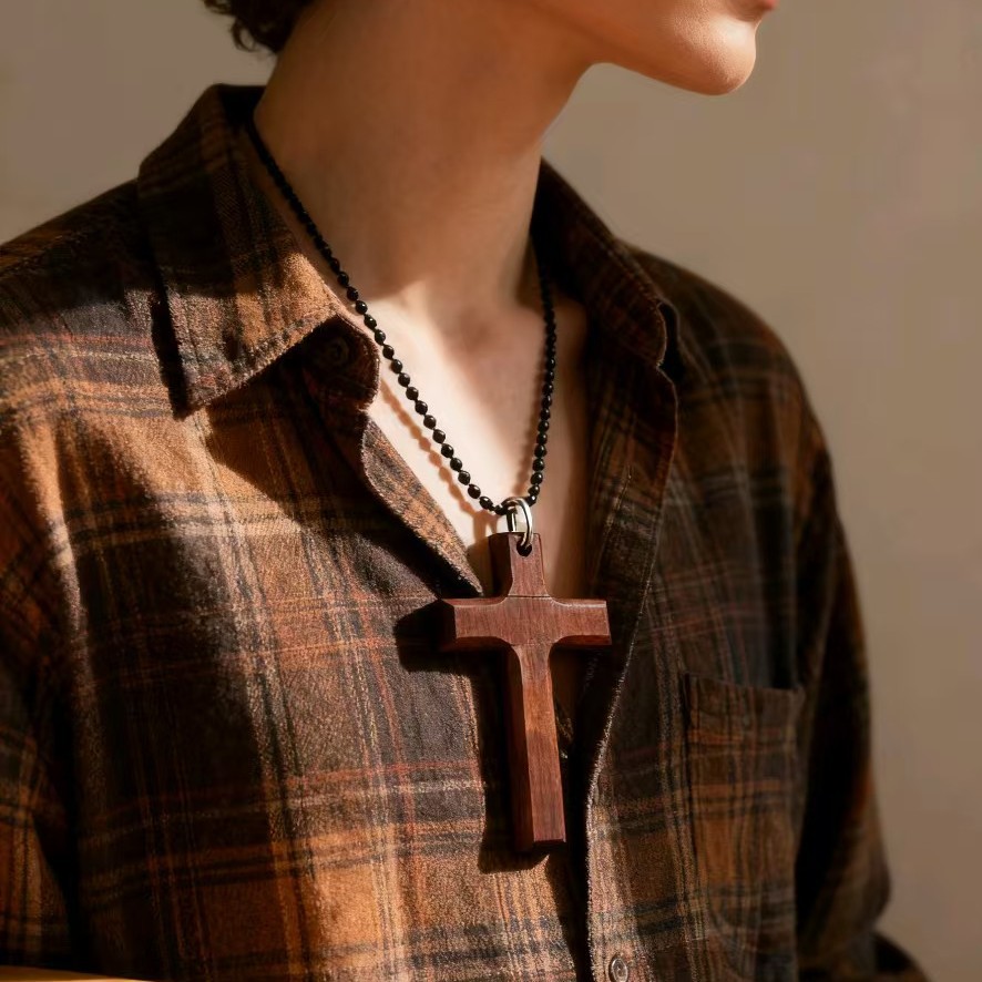 Cross-Border Retro Wooden Cross Sweater Chain Car Pendant Dark Style Men and Women Couple Pendant Fashionable and Versatile