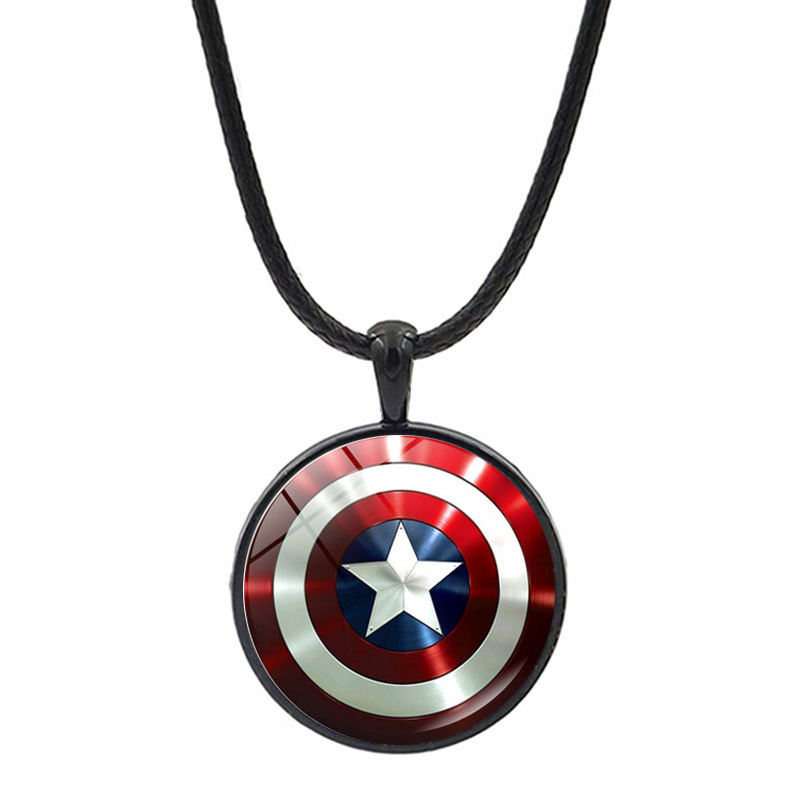 Captain America Shield Necklace Men and Women All-match Marvel Hero logo Reactor Pendant European and American Black Rope Sweater Chain