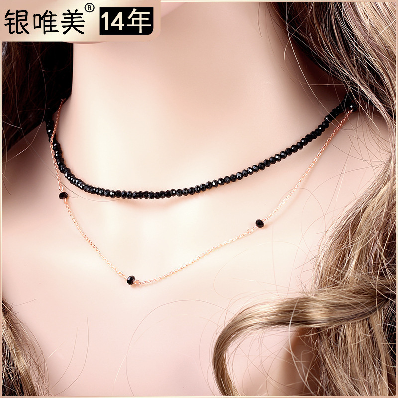 925 silver black spinel choker necklace clavicle chain short neck chain versatile accessories jewelry neck strap