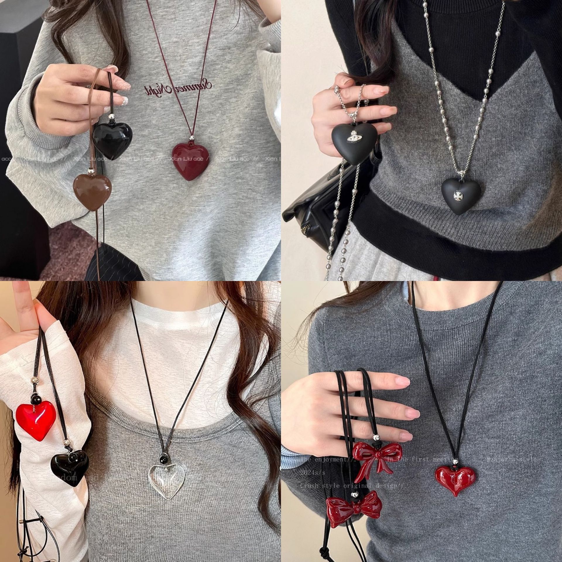 Cross-border supply of crystal love necklace natural colored gemstone pendant diy winding heart-shaped Barbie necklace wholesale