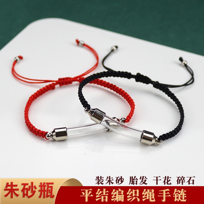 Openable screw cap glass elbow bracelet urn cinnabar bottle bracelet hand-woven flat knot bracelet