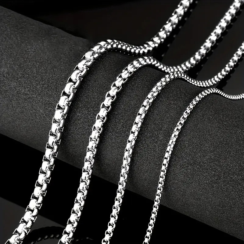 Cross-Border Hot Selling Titanium Steel Square Pearl Chain Simple Fashion Women's Versatile Stainless Steel Necklace DIY Accessories Jewelry Wholesale