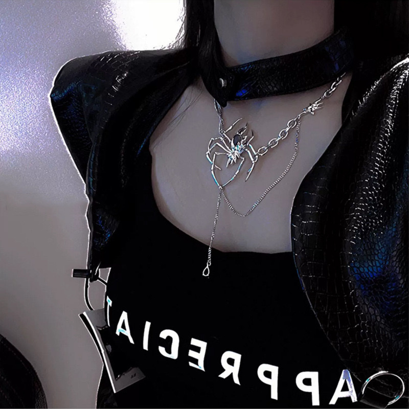 European and American black gem Spider necklace for Women New fashion personality hip hop exaggerated style clavicle chain internet celebrity fashion necklace