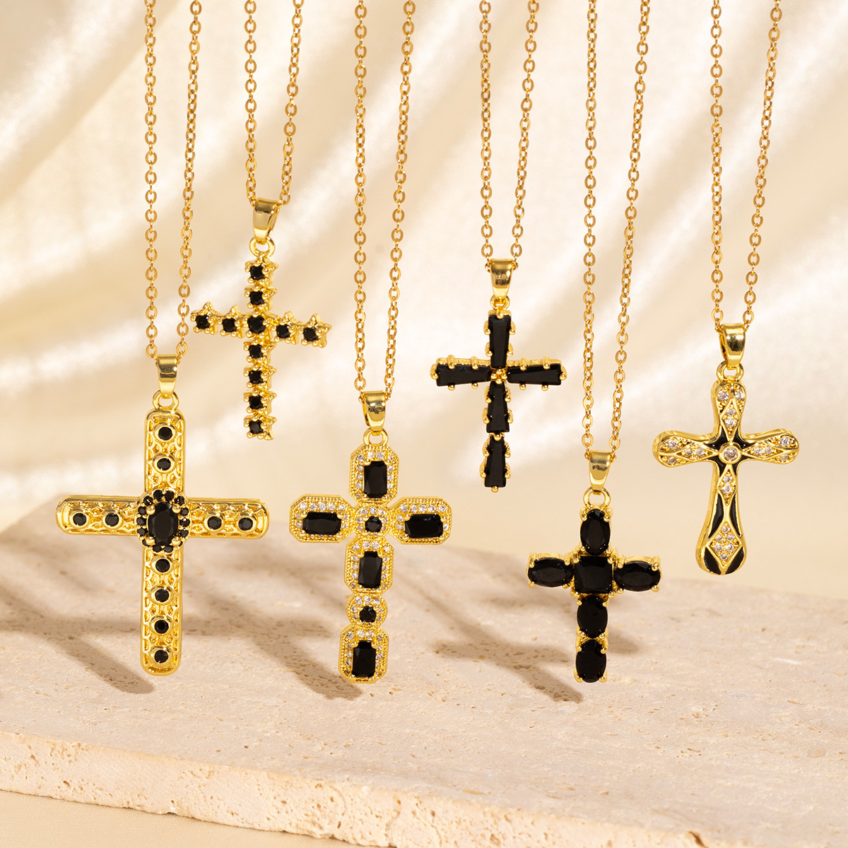 Amazon's Best-Selling Black Zircon Cross Necklace Copper Gold-Plated Niche Design Exquisite Cross-Border Jewelry Wholesale for Women