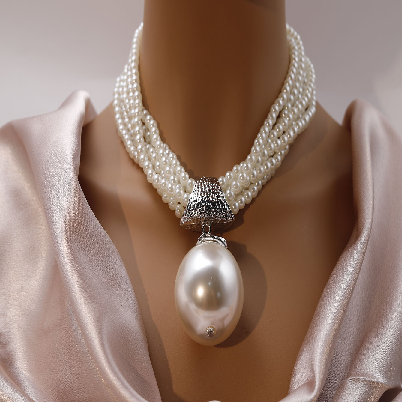 New multi-layer necklace large pearl personality exaggerated niche design fashion clavicle chain European and American necklace factory wholesale