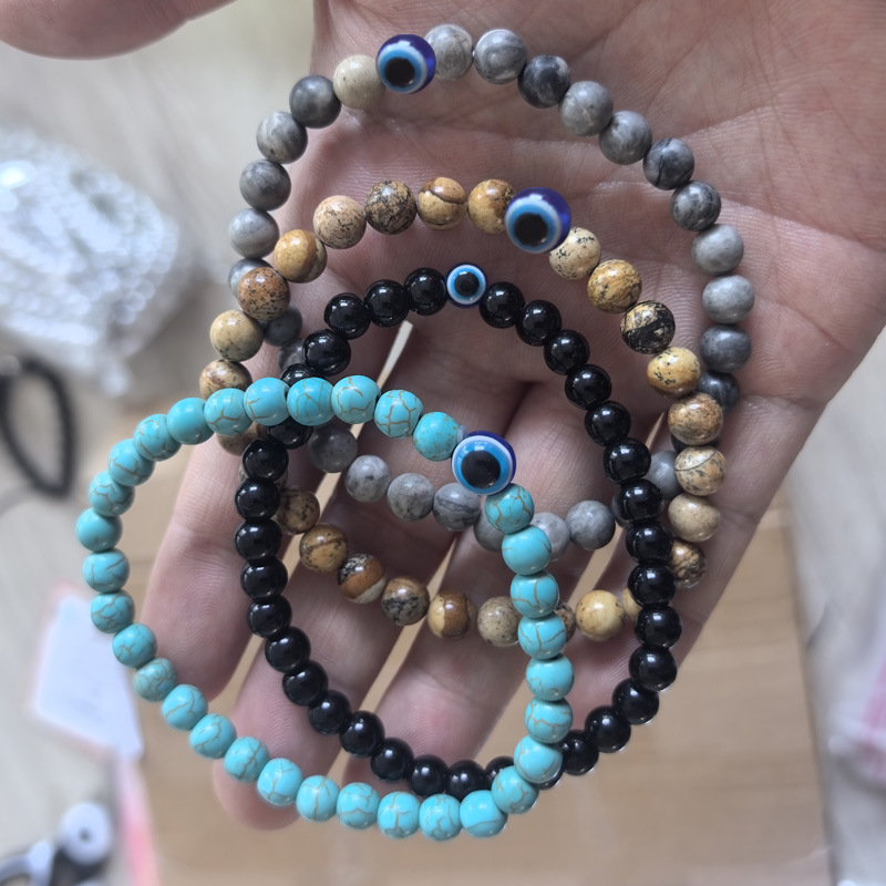 Fashion 6mm Natural Stone Bead Eye Obsidian Hematite Tiger Eye White Pine Elastic Bracelet Men's Bracelet
