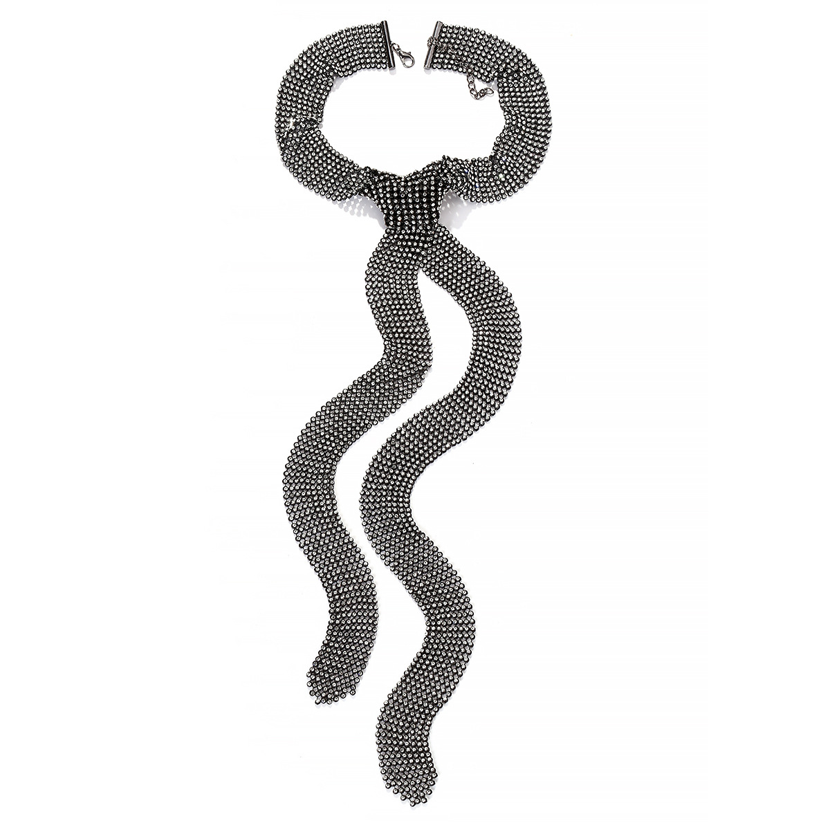 ZA Light Luxury Rhinestone Hollow Mesh Tie Pendant Necklace European and American Retro Personalized All-match Woolen Chain Women's Cross-border