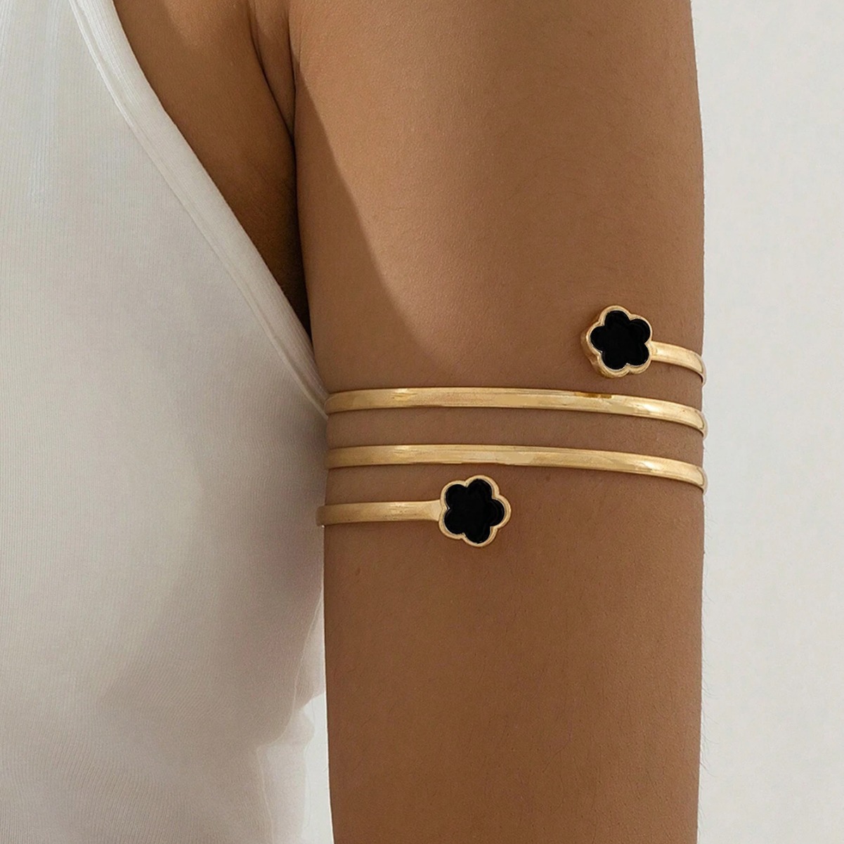 European and American Cross-border Supply Fashion Three-layer Four-leaf Flower Upper Arm Bracelet Lucky Grass Flower Opening Adjustable Arm Ring
