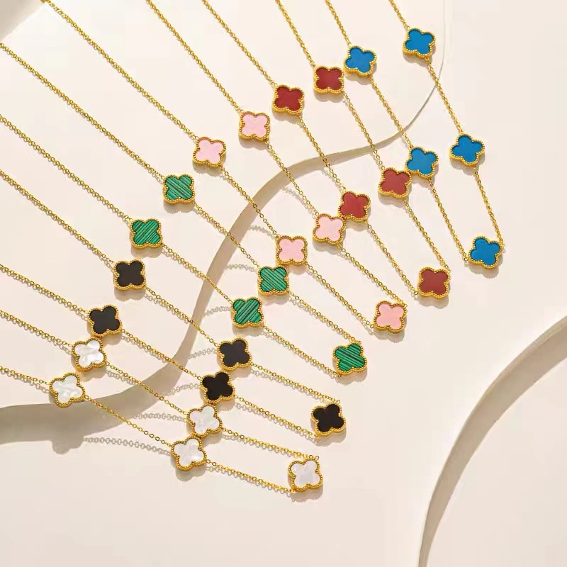 Cross-Border Lucky Four-Leaf Clover Necklace 18K Gold Double-Sided Ol Mother-Of-Pearl European and American Fashion New Elegant Versatile Shein