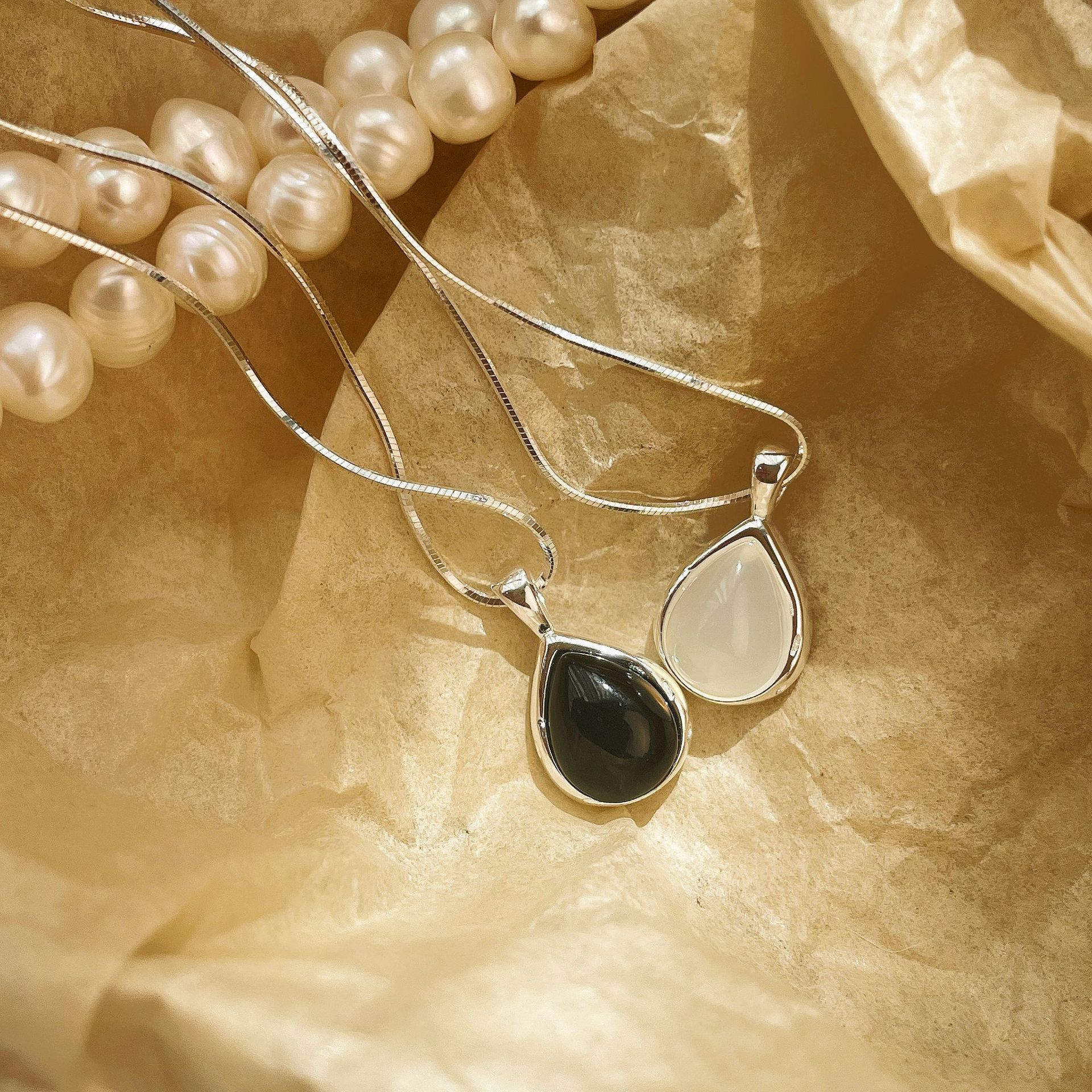 Tiki Korean Style S925 Sterling Silver Black Onyx Drop Necklace Women's High-Level Design Sense Ins Cold Style Snake Bone Chain
