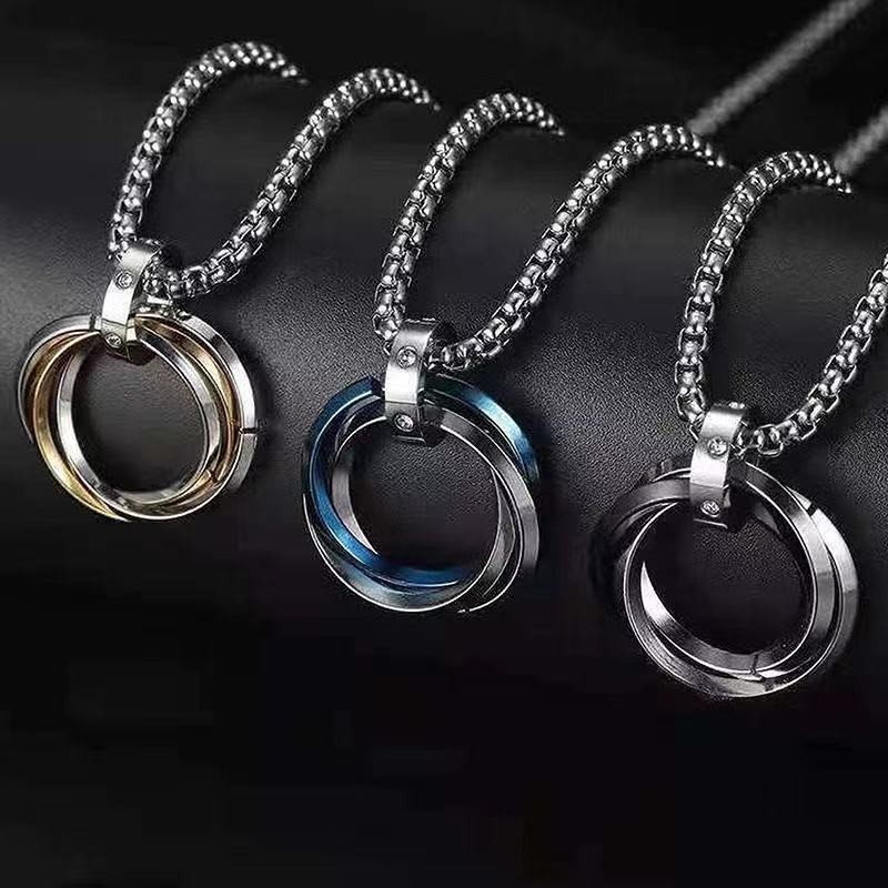 European and American Cross-border Stainless Steel Three-ring Necklace Simple Color-free Trendy Hip-hop Style Titanium Steel Diamond Pendant Jewelry for Men and Women