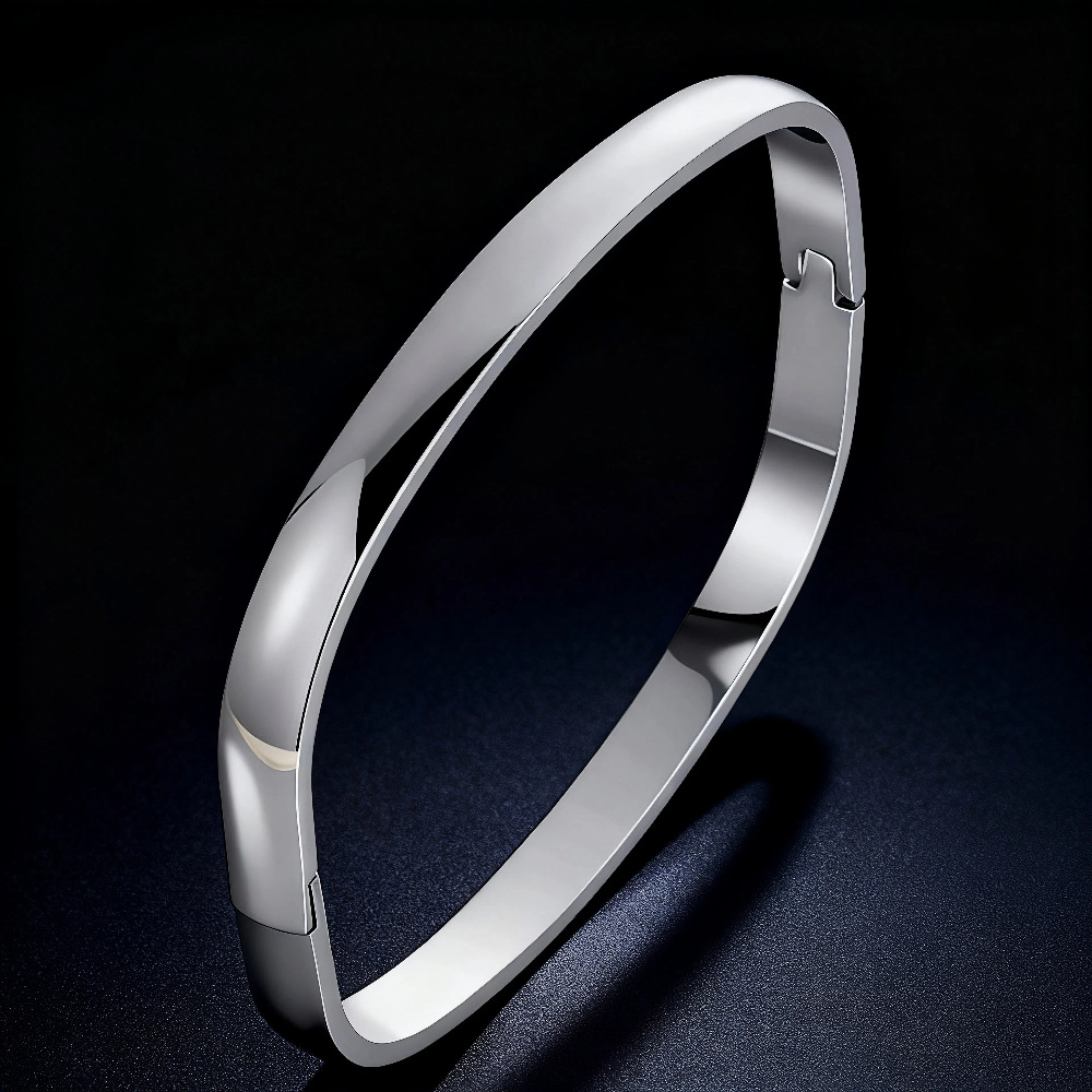European and American Style Simple Glossy Buckle Bracelet Cold Style 8mm Wide No Logo Couple Stainless Steel Bracelet Bracelet