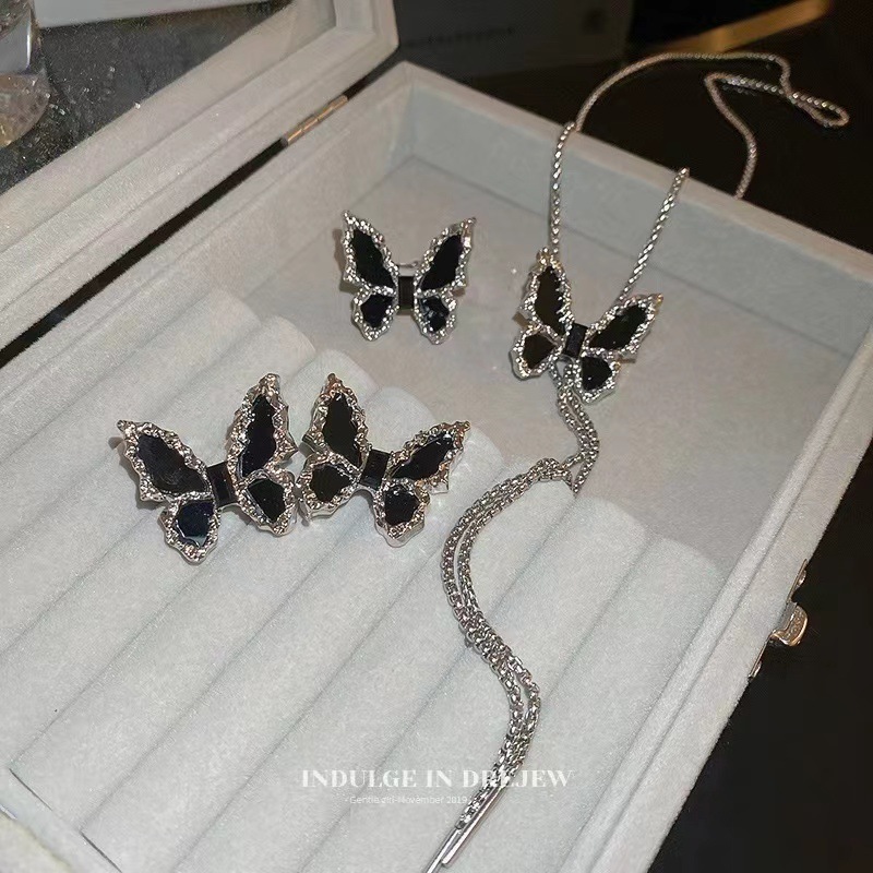 Black Butterfly Woolen Chain Atmospheric High-end Long High-end Necklace Women's 2024 New Entry Luxury Collar Chain Necklace Chain