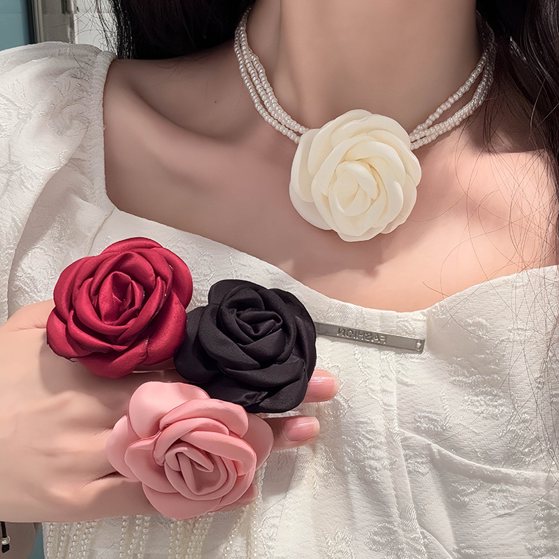 Pure Rose Flower Pearl Multi-layer Necklace Women's Light Luxury High-end Choker Clavicle Chain Collar Neckband Necklace Chain