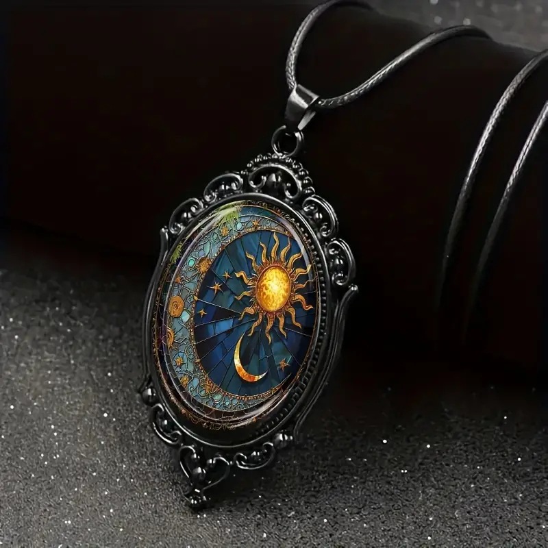 Cross Border New Elegant Necklace Sun and Moon Pattern & Black Frame, Vintage Romantic Jewelry