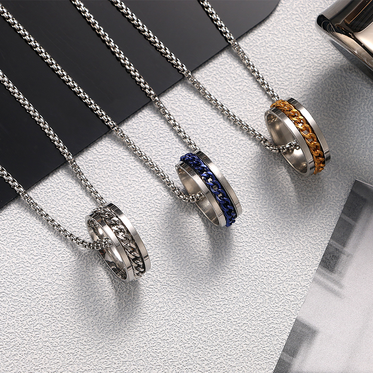 Men's Titanium Steel Chain Rotating Ring Women's Rotatable Decompression Jewelry Beer Opener Titanium Steel Necklace Internet Celebrity Sweater Chain