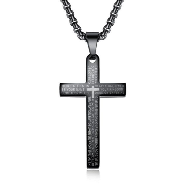 Cross Engraving Necklace Stainless Steel Chain Polished Men's Faith Necklace Black Cross Engraving Necklace