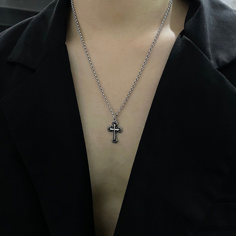 Cross Personality Necklace Cool Diablo Trendy Retro Cold Style Simple Fashion All-match European and American Temperament Small Handsome