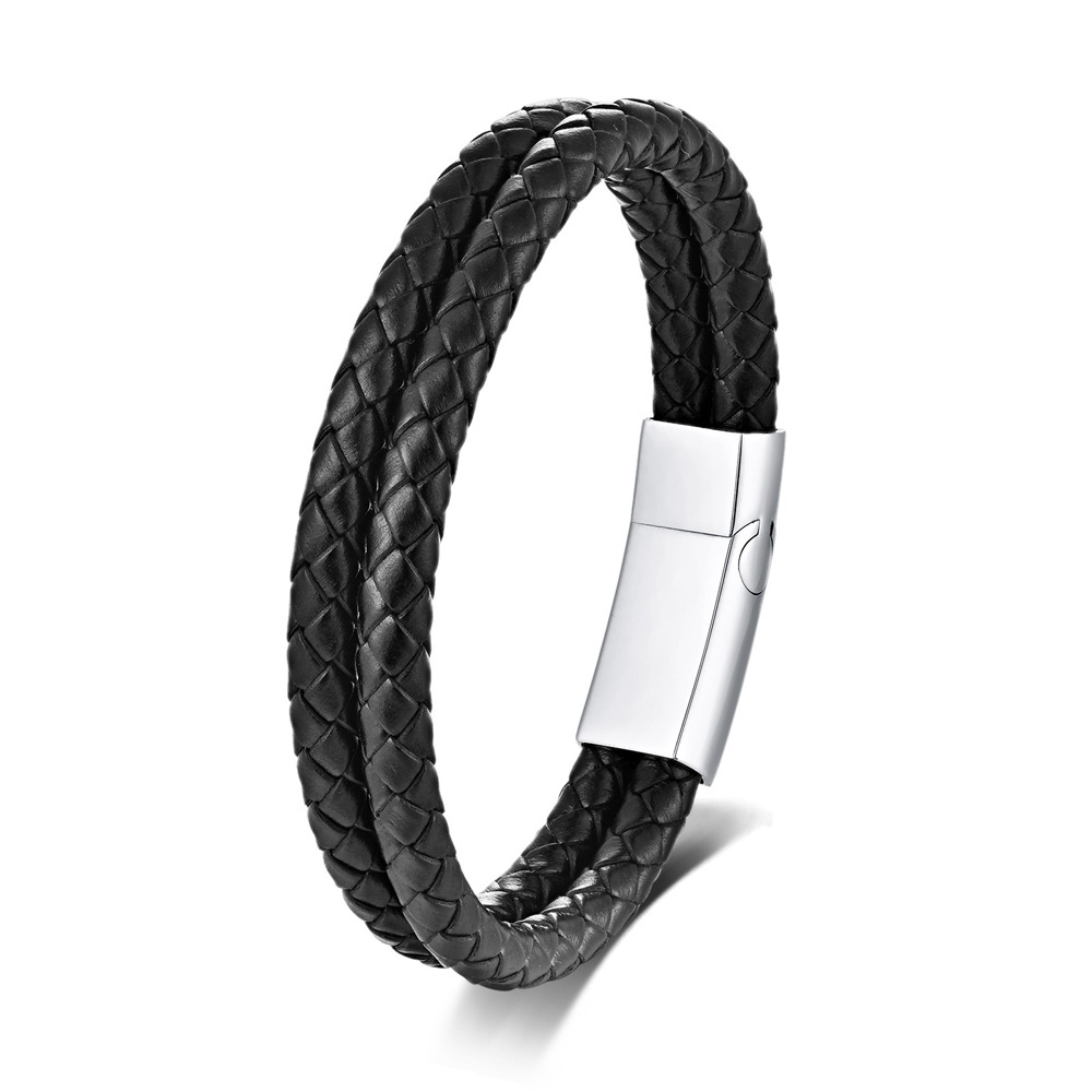 Cross-border double-layer leather rope bracelet simple father's day lettering leather bracelet stainless steel buckle jewelry DIY marking