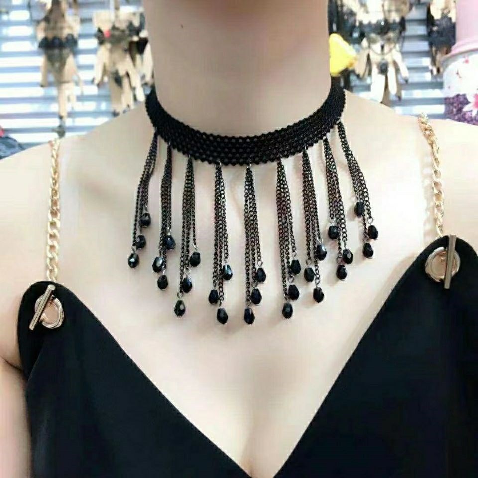 Internet famous 2021 New clavicle chain tassel pendant sexy neck strap neck black lace accessories necklace women