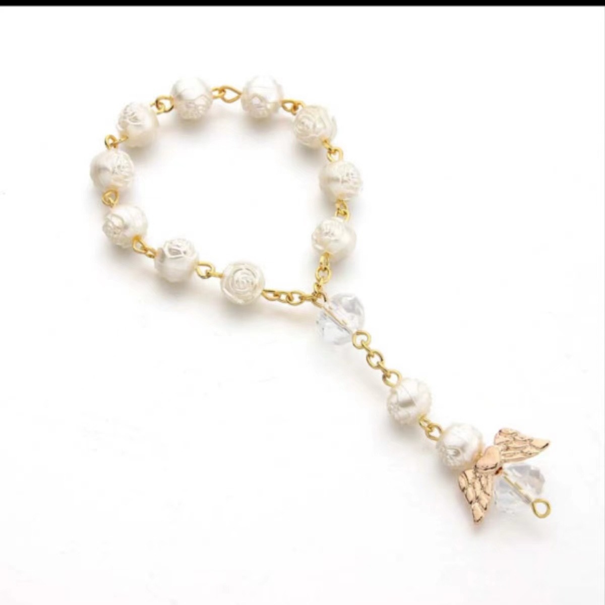 Cross-border Hot Sale Angel Wings Rose Flower Baptism Beads Pearl Bracelet Rosary Cross Rosary