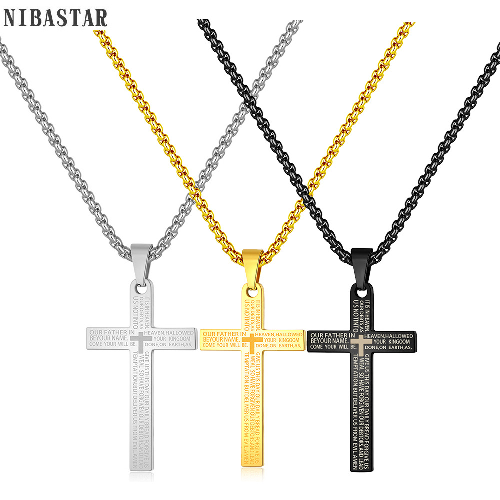 Europe and the United States cross-border Amazon new hot 50MM three-color cross lettering necklace stainless steel necklace men wholesale