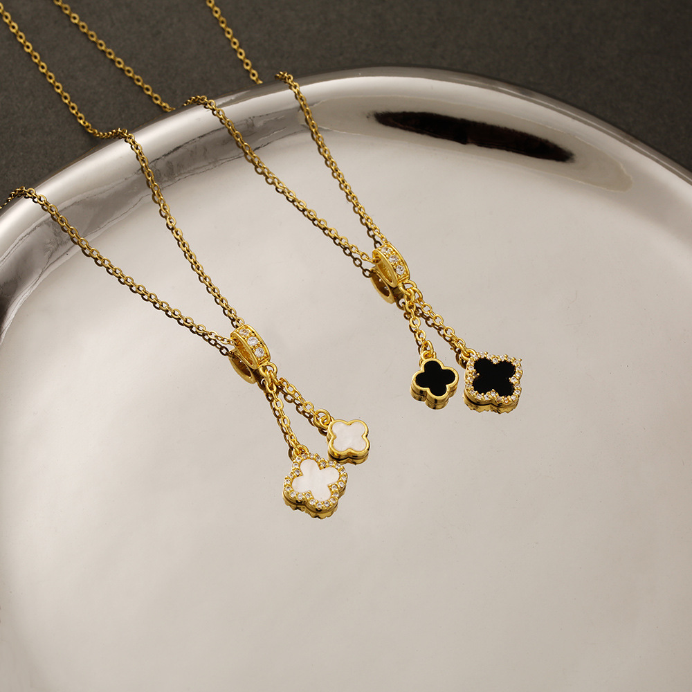 Light Luxury Four-leaf Clover Tassel Titanium Steel Necklace Women's All-match Ins Style Niche Design Pendant Exquisite Collarbone Chain Accessories