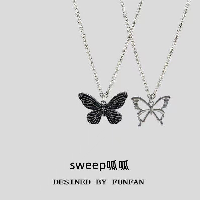 K-Style of Retro Hollow Butterfly Necklace Ins Female Hip-Hop Sweet Cool Trendy Versatile Couple Pendant Simple Accessories