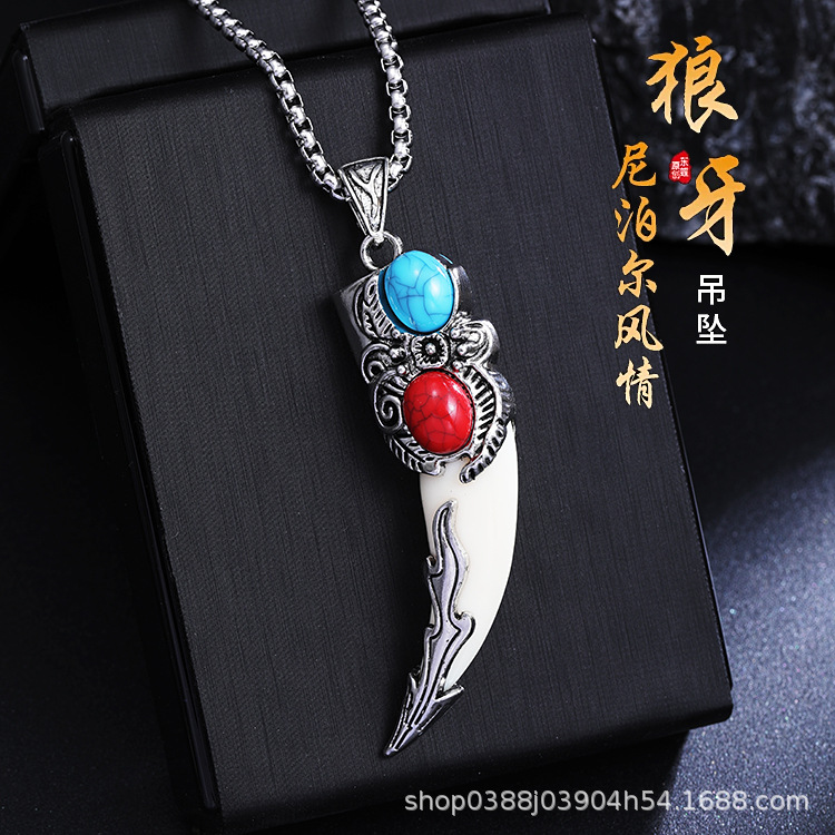 Vintage Bold Realistic Wolf Tooth Men's Necklace Personality Pendant European and American Stainless Steel Punk Trendy Cool Accessory