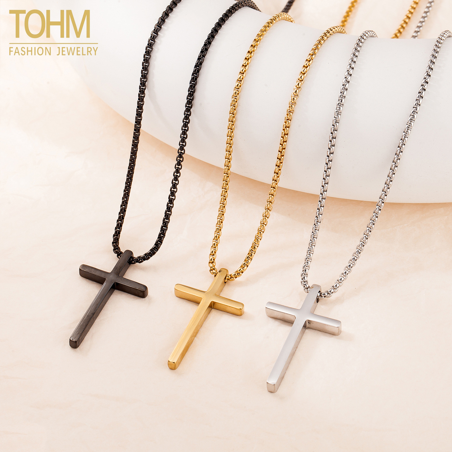 Tohm European and American Cross-Border Stainless Steel Cross Necklace, All Titanium Steel, Versatile Long Electroplated Necklace for Men and Women