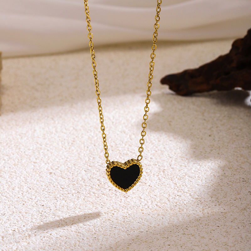 Korean Style Black Peach Heart Necklace Korean Style New Black and Red Double-Sided Heart Titanium Steel Women's Japanese and Korean Short Style Small Fresh Stylish