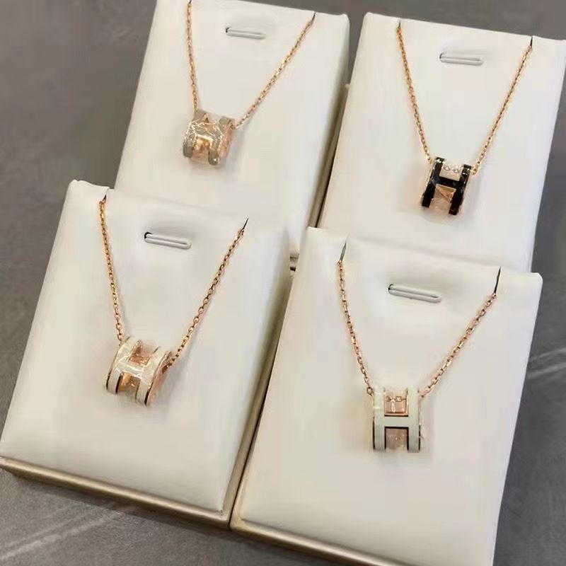 [No fading, no allergy] light luxury H letter pendant necklace female French style high design necklace clavicle chain
