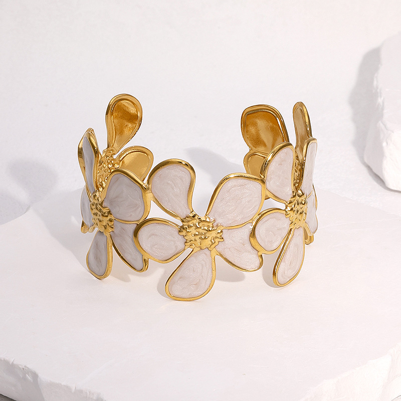 European and American New Stainless Steel Open Bracelet Niche High-End Elegant Accessible Luxury Style 18K Gold Titanium Steel Bracelet Wholesale