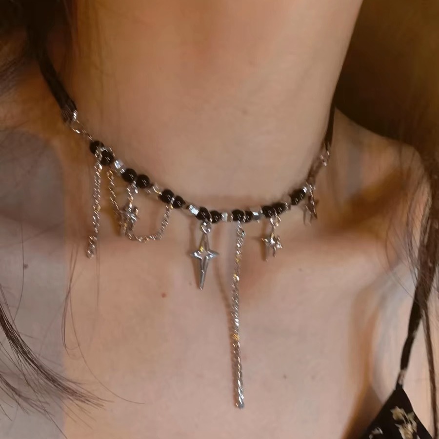 Black Cross stitching necklace light luxury high-grade cold style fashion all-match niche design clavicle chain