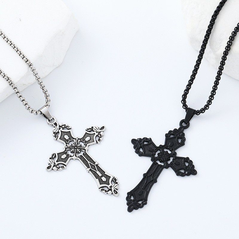 Bohemian cold style sweater chain European and American Baroque cross necklace female personality retro gothic pendant