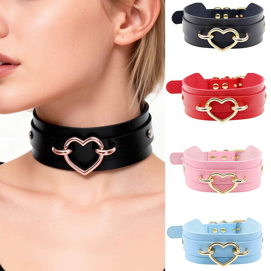 Eco-Friendly Pu Leather European and American Style Exaggerated Bondage Collar Street Style Nightclub Sexy Heart Necklace Neck Strap