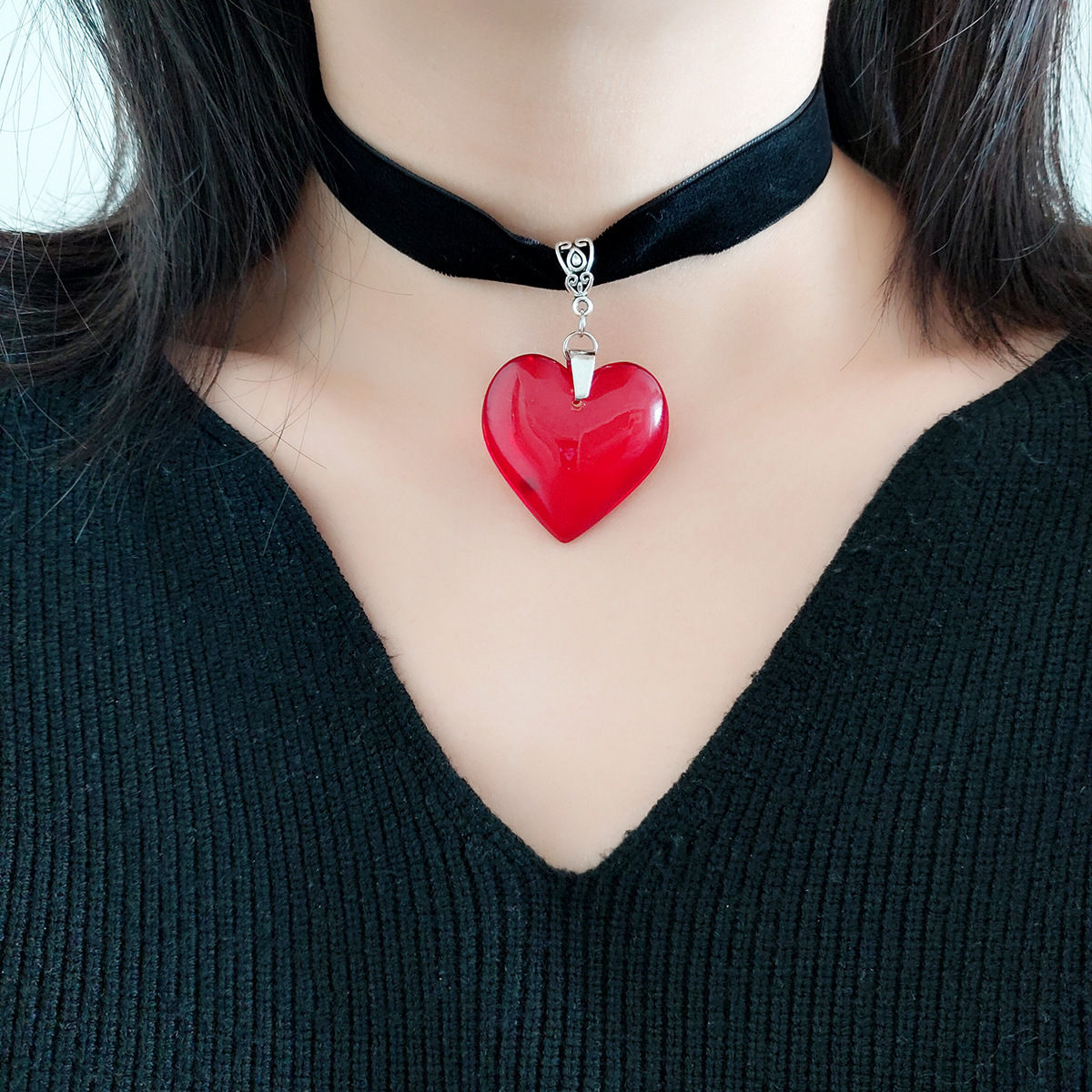 Red Heart Pendant Sweet Cool Choker Collar Neck Strap Necklace Jewelry Accessories Dark Gothic Style Necklace for Women