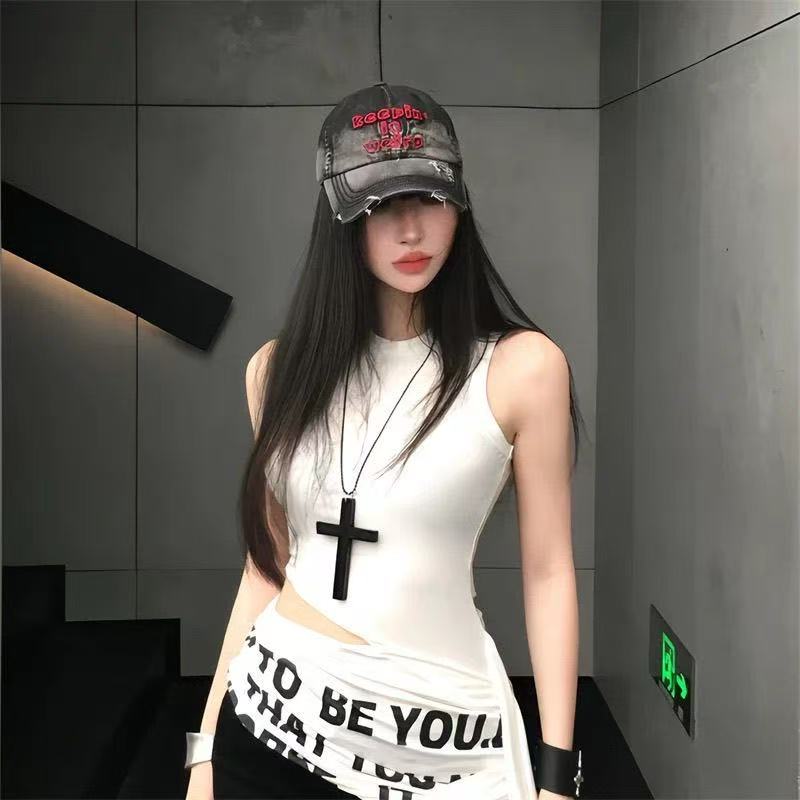 Vintage Dark Style Wooden Cross Pendant Necklace Gothic Friend Yk Subculture Collarbone Versatile Accessory