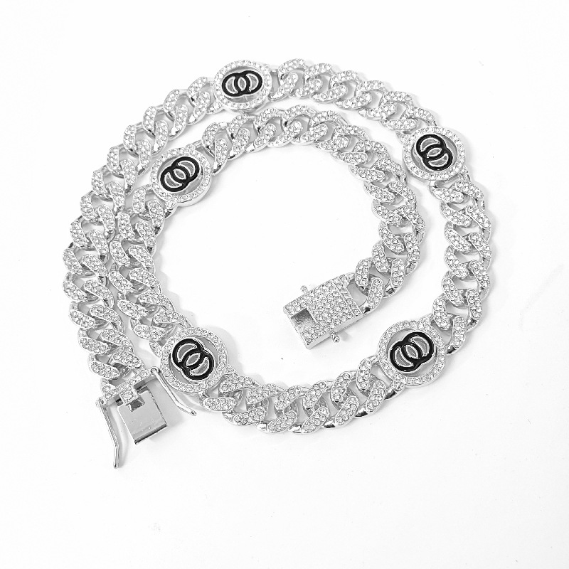 European and American Hip-Hop Style Sweater Necklace Accessories, High-End Cuban Chain Full of Diamonds, Rhombus Necklace
