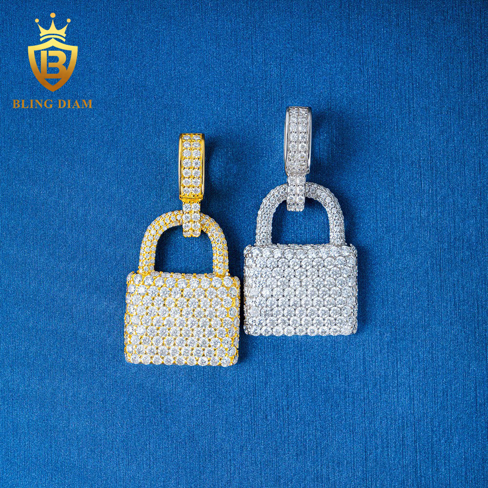Hip-Hop Cross-Border Hot-Selling 925 Silver Moissanite Hip-Hop Pendant Lock Trendy Wearable Necklace Cross